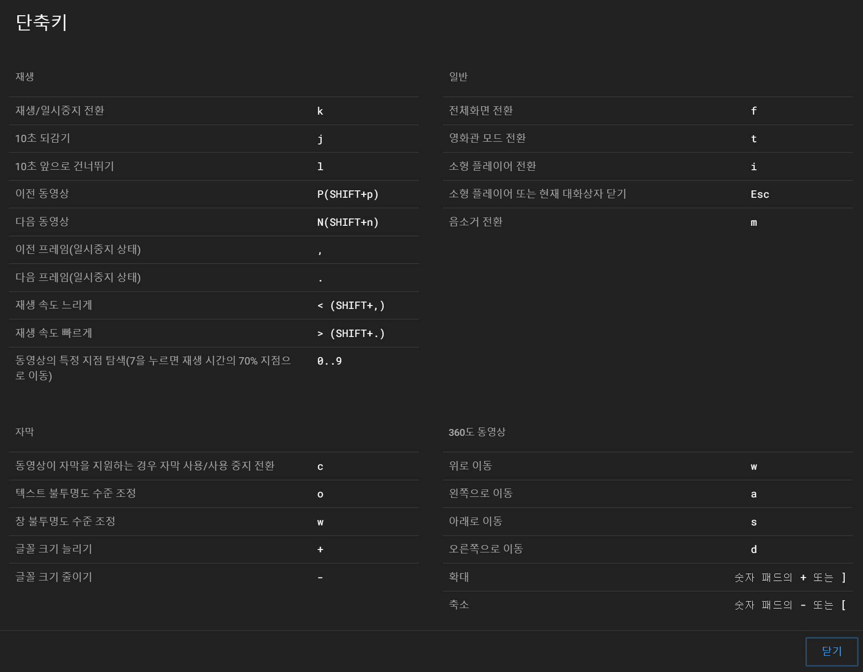 유튜브 단축키 모음(2021. 01)